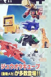 Here are the Juuohcubes in animal moce from Cube Eagle, Cube Lion, Cube Shark, Cube Elephant and Cube Tiger. It also includes some two armament who will debut on this upcoming series such as Cube Hyena and Cube Gorilla.